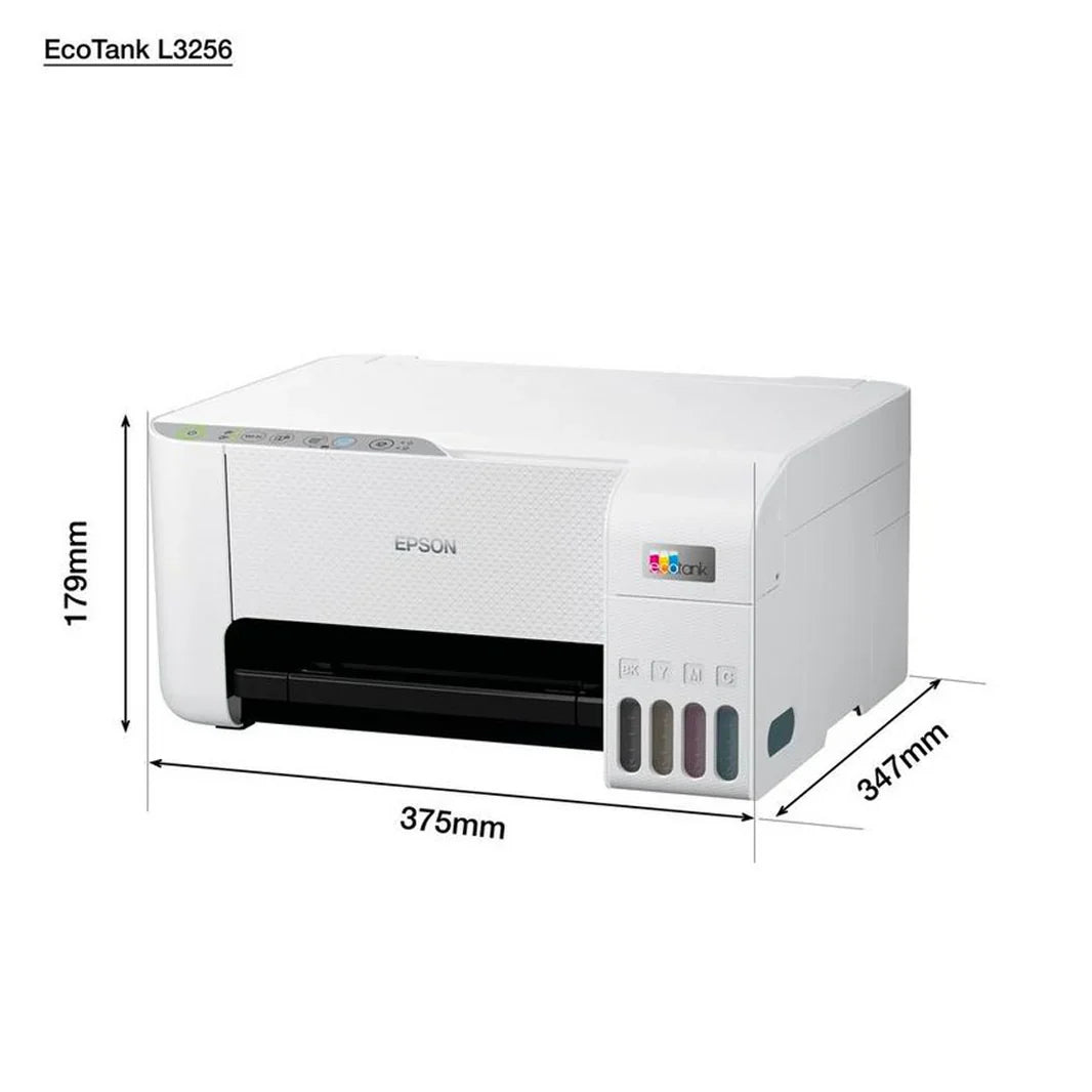 The Epson EcoTank L3256 is a versatile and cost-effective home ink tank printer designed for hassle-free, ultra-low-cost printing. Featuring a compact and modern design, it seamlessly integrates into any home setup with its wireless capabilities, offering convenient print, scan, and copy functions.